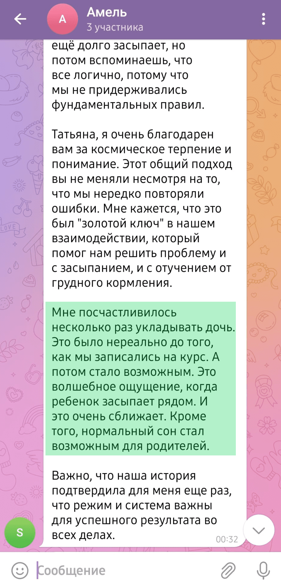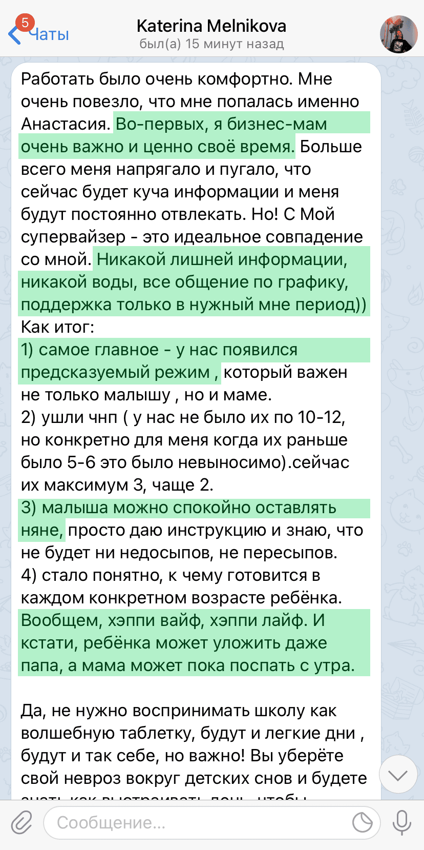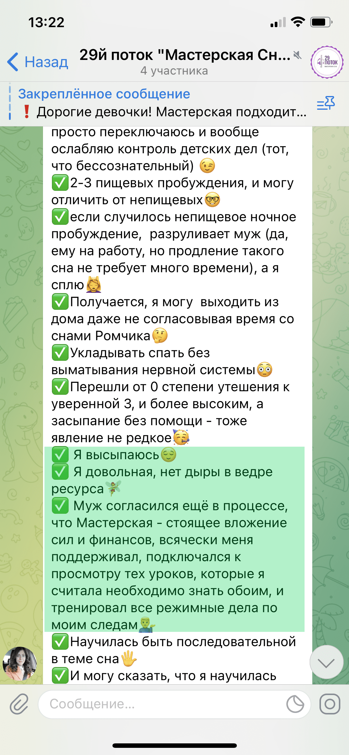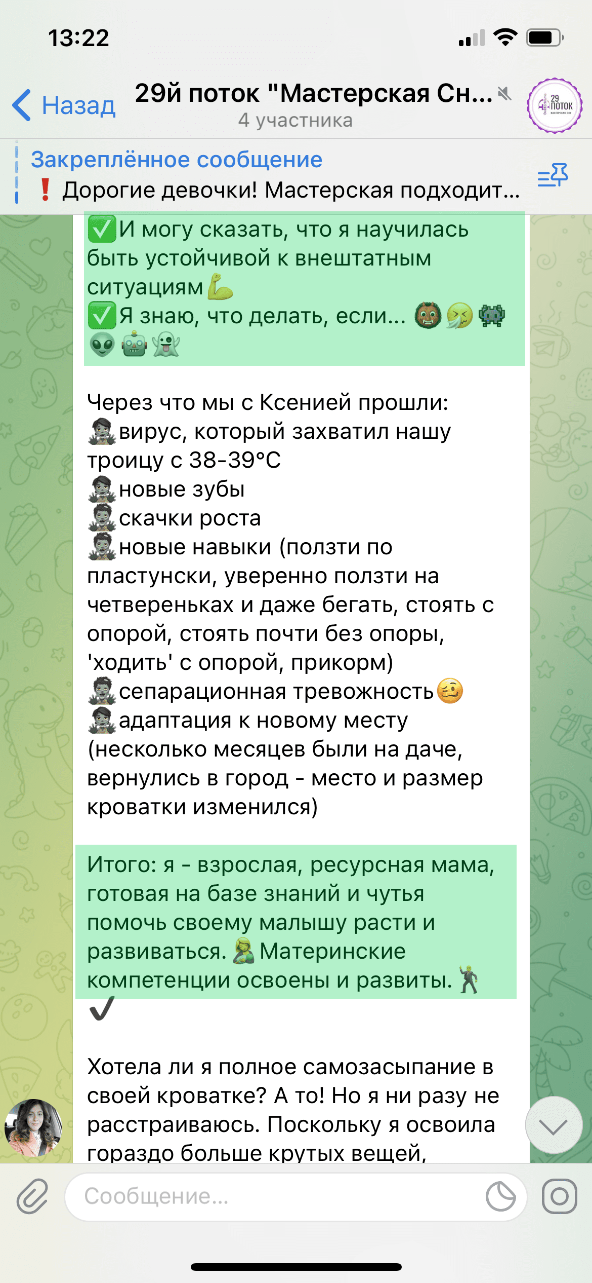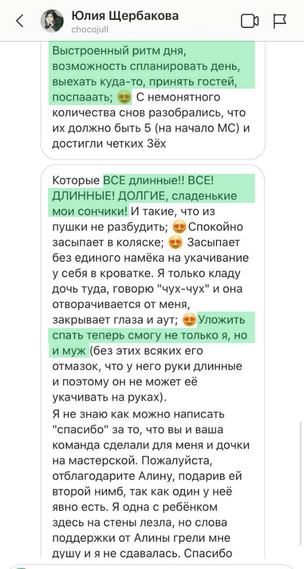 - Доступ к чату выпускников, где можете обмениваться опытом с другими мамами, а опытная Супервайзерка раз в неделю отвечает на Ваши вопросы по сну