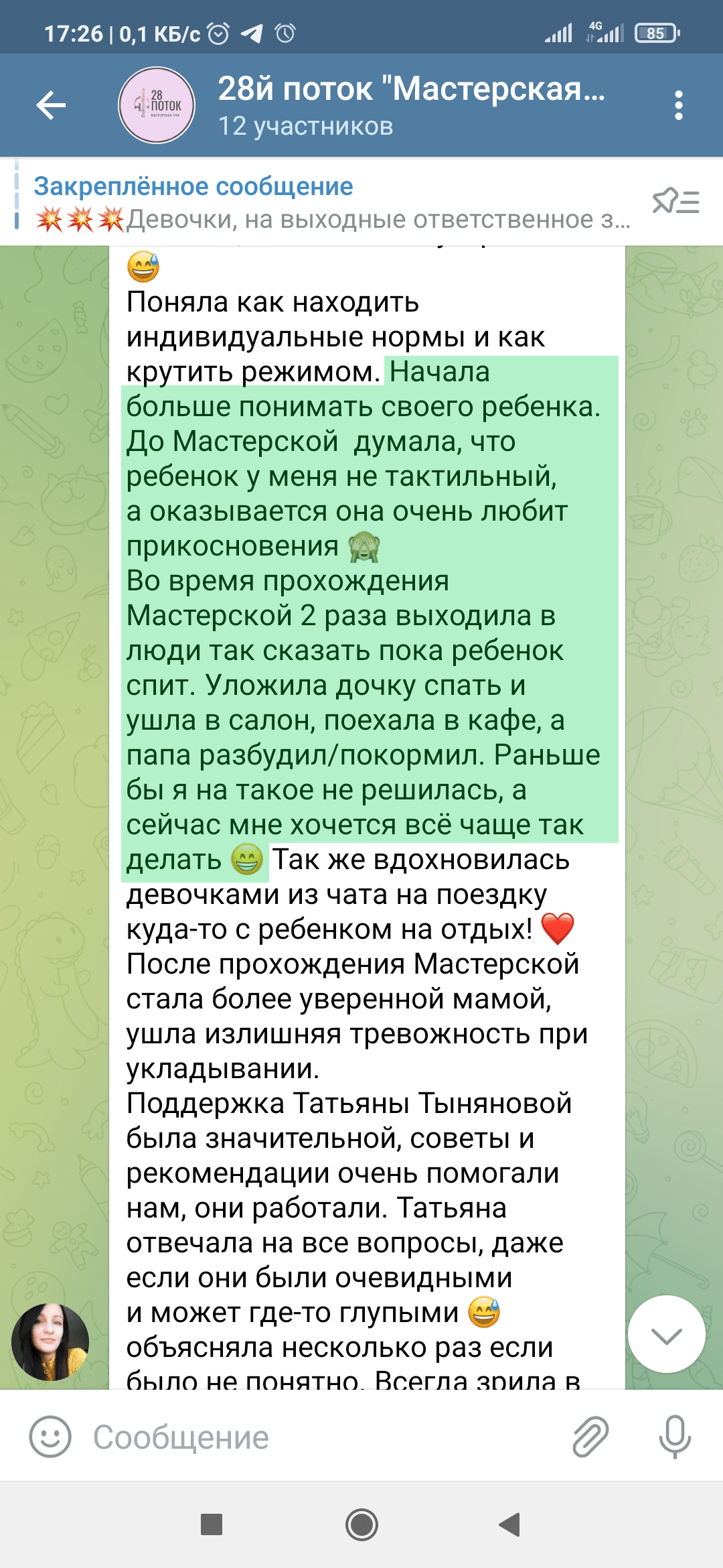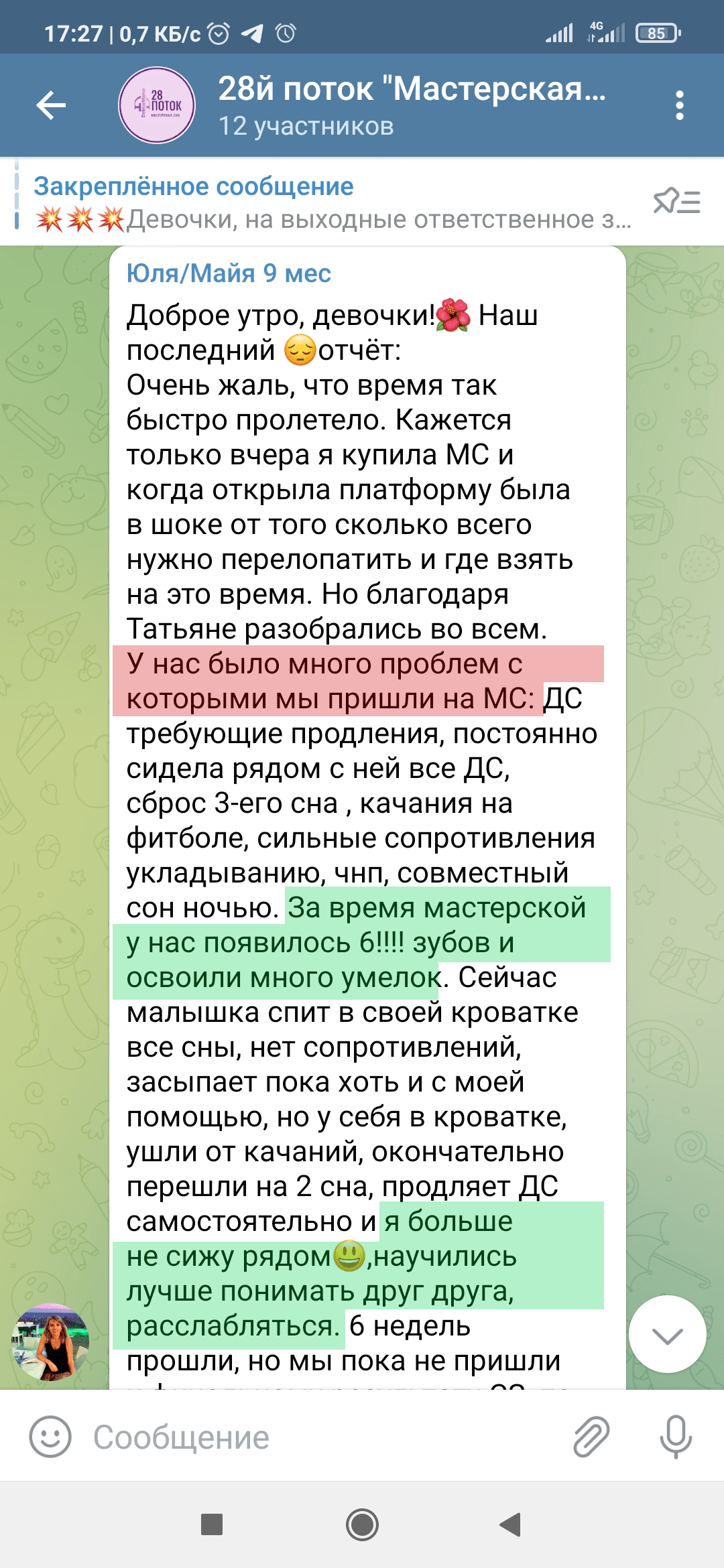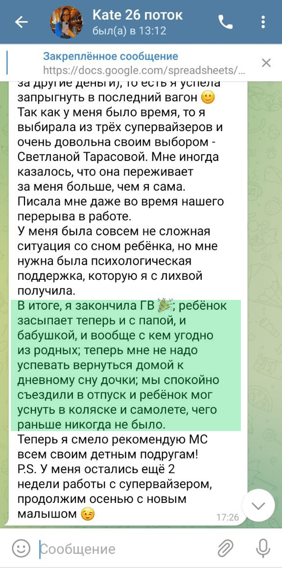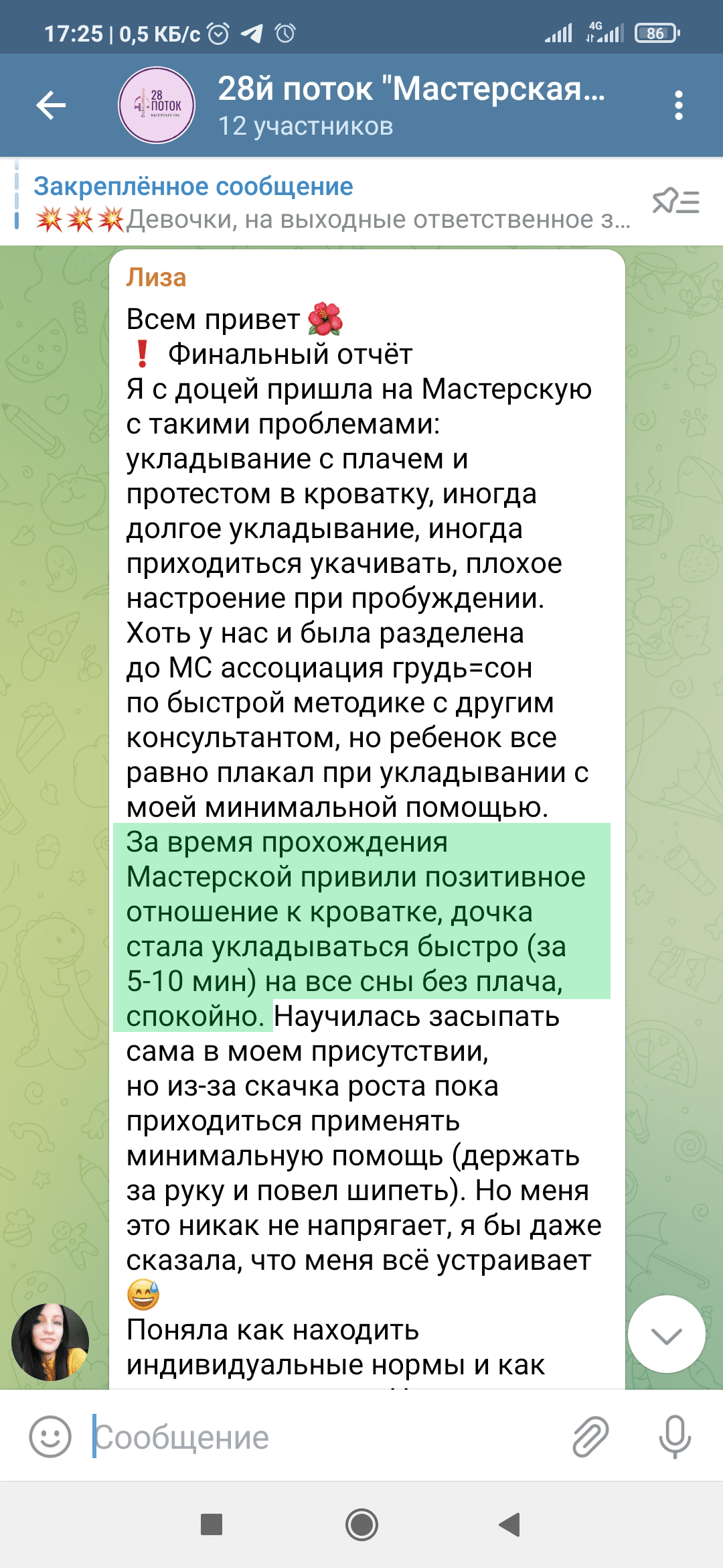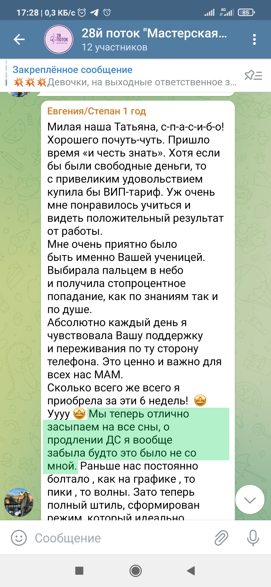 - Доступ к чату выпускников, где можете обмениваться опытом с другими мамами, а опытная Супервайзерка раз в неделю отвечает на Ваши вопросы по сну