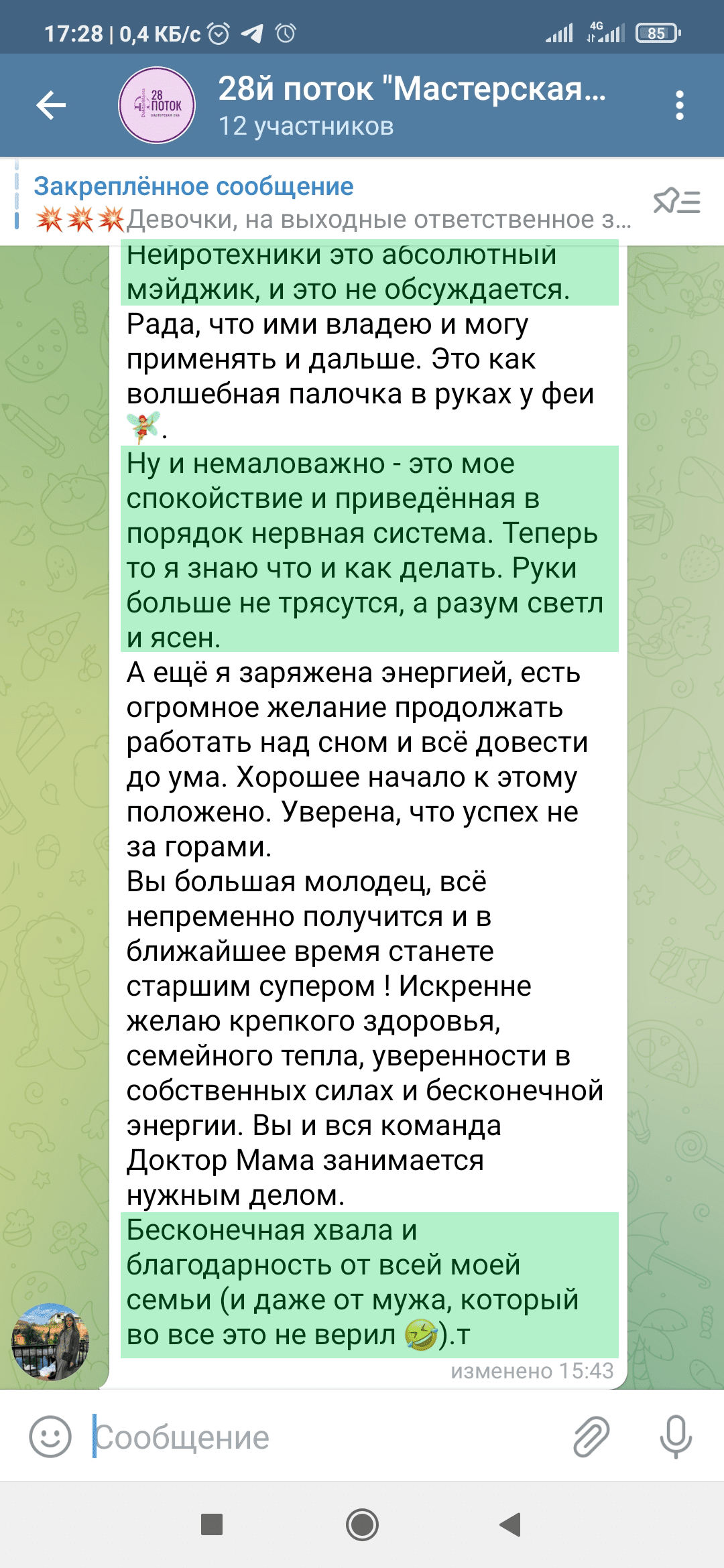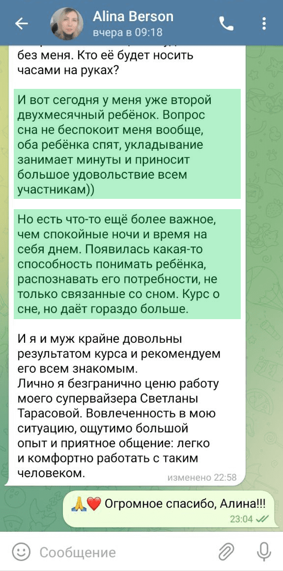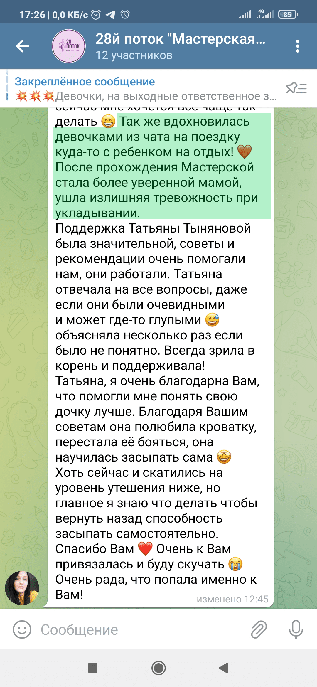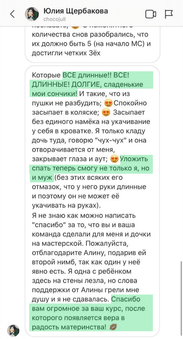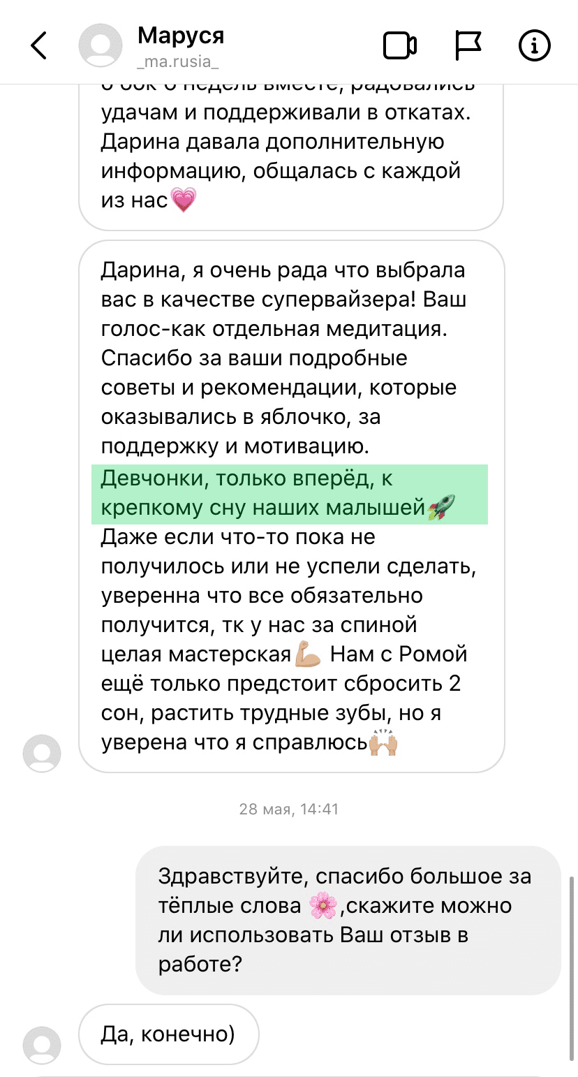 - Доступ к чату выпускников, где можете обмениваться опытом с другими мамами, а опытная Супервайзерка раз в неделю отвечает на Ваши вопросы по сну