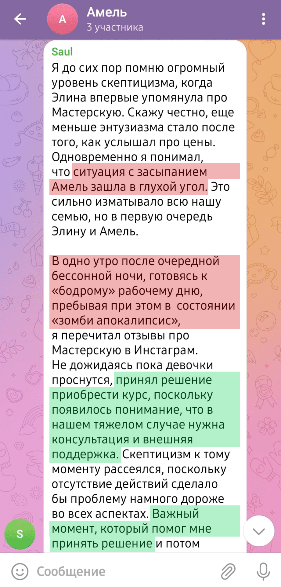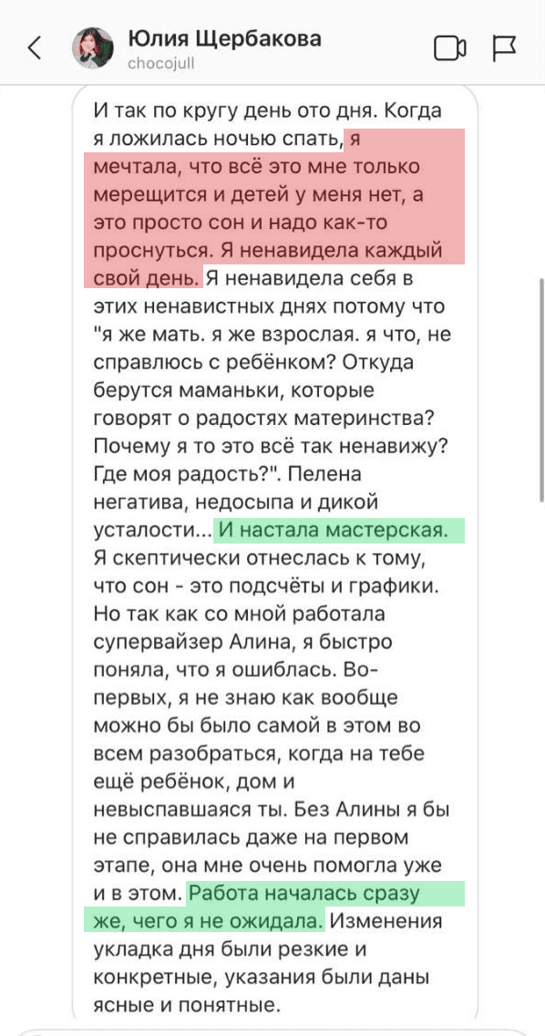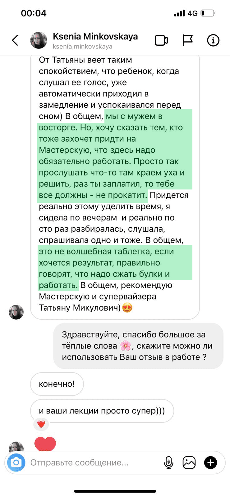 На каждом потоке курса стабильно есть 2-3 человека из 200, которые остаются недовольны. Они не пишут отчеты в чате обратной связи и мы не знаем, что у них происходит. Они выполняют только те рекомендации супервайзера,которые им удобны, все остальное игнорируют. Этим участникам невозможно помочь. Если вы не планируете делать так, как они – вам точно поможет Мастерская!