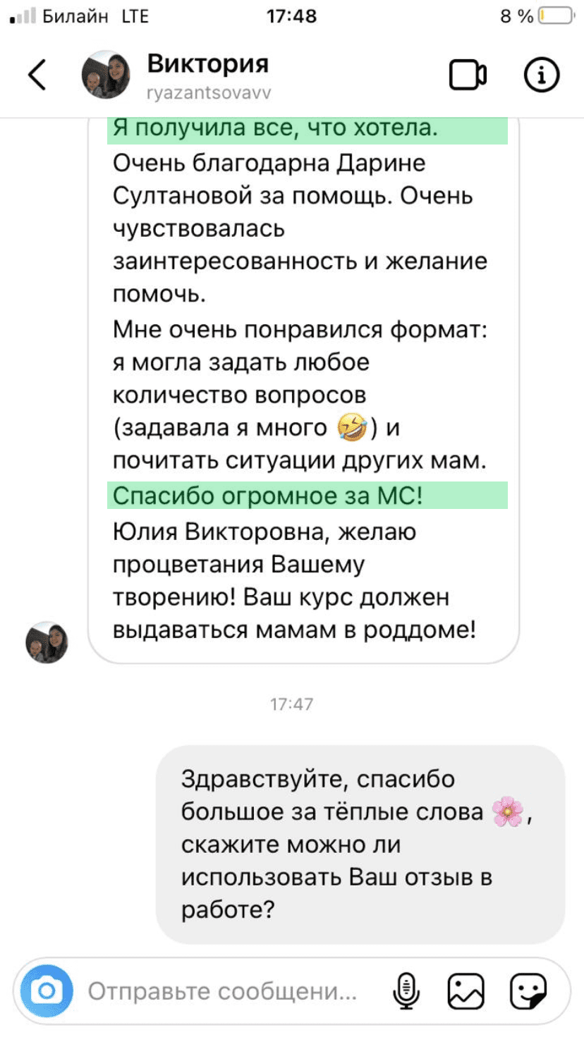 - “Курс классный! Я бы купила 😍 Очень много полезной информации!"